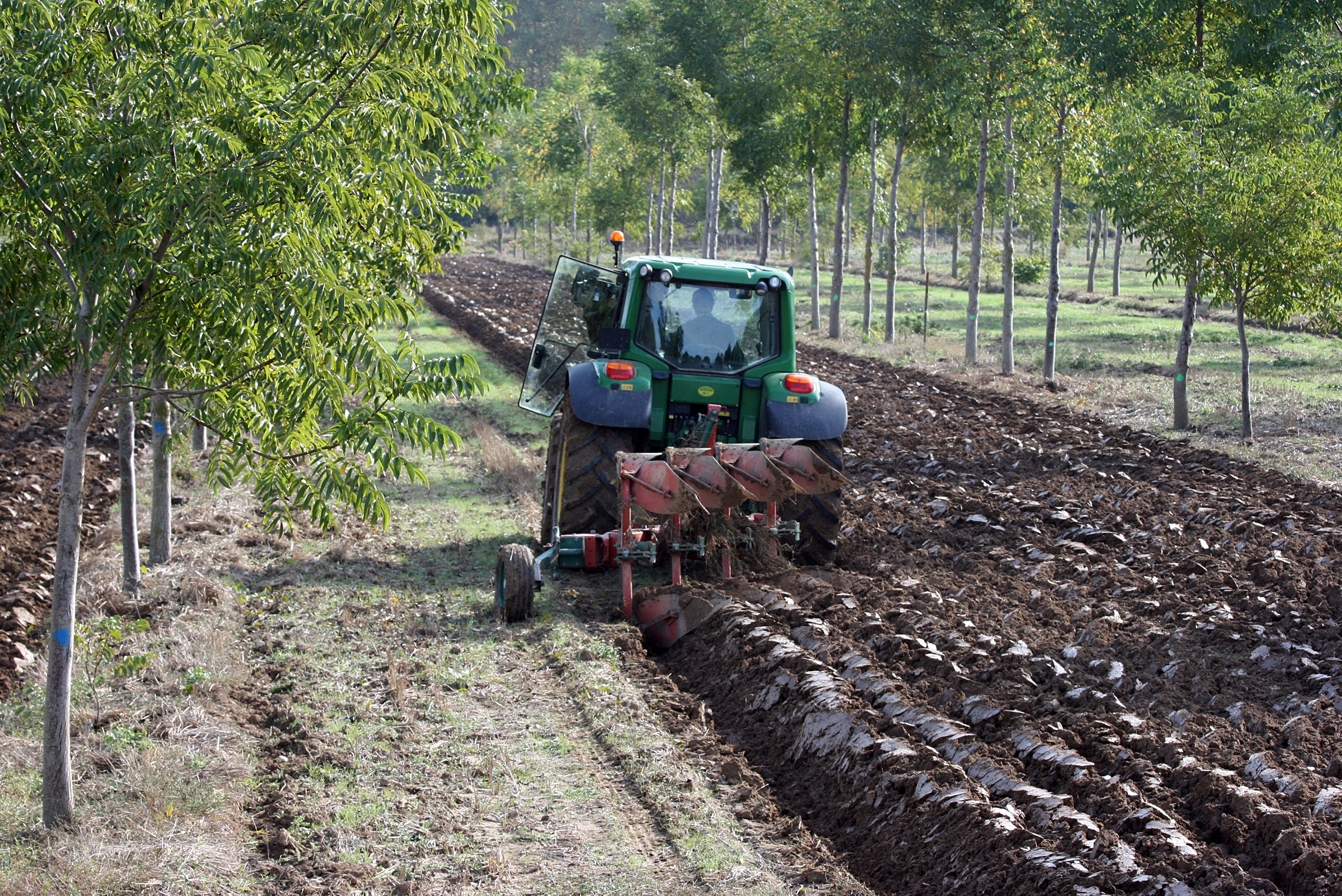 Source: Ploughing in between 14 year old walnut trees, Domaine de Restinclières, Montpellier,